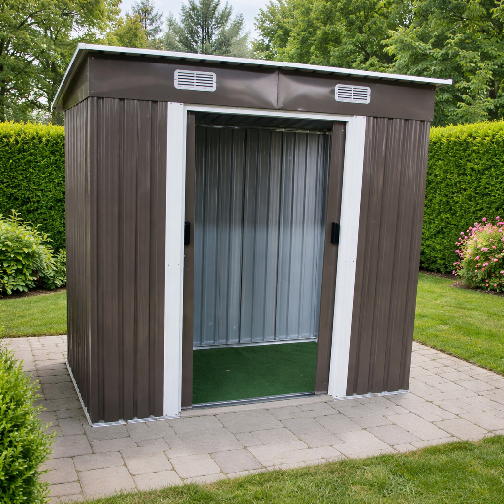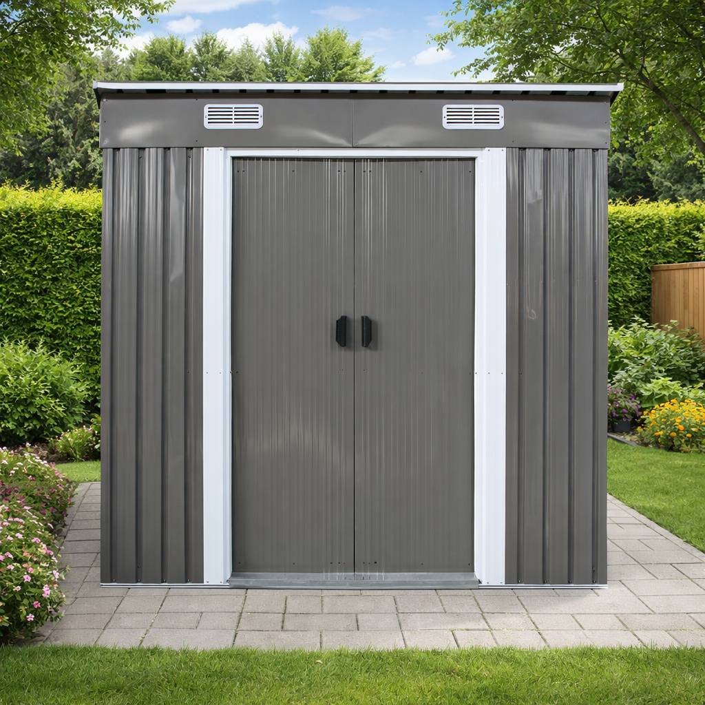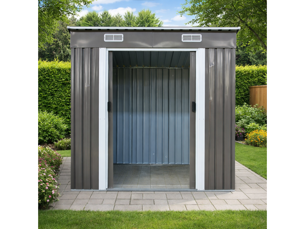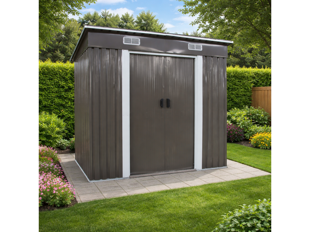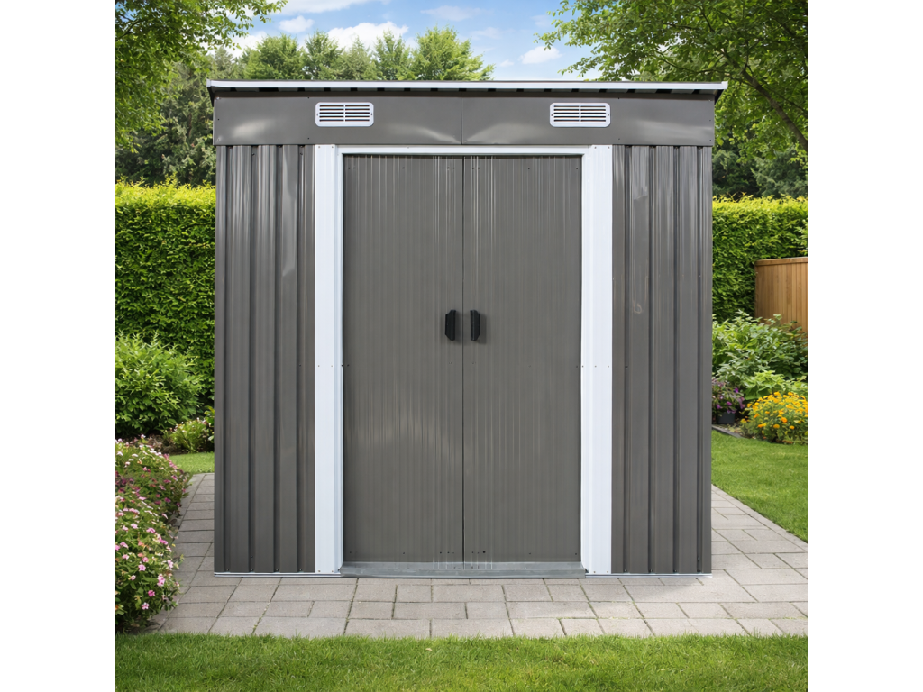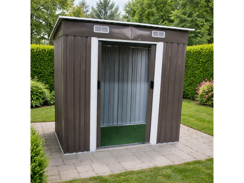 Odolná ocelová konstrukceKonstrukce je vyrobena z pozinkované oceli o síle 0,6 mm, která zajišťuje stabilitu a dlouhou životnost. Opláštění tvoří lakovaný pozinkovaný ocelový plech o síle 0,25 mm. Pozinkování chrání materiál proti korozi a zajišťuje odolnost vůči vlhkosti i nepříznivým povětrnostním podmínkám. Robustní rám zvyšuje celkovou pevnost stavby. TIP: Pro maximální stabilitu doporučujeme domek umístit na rovný a zpevněný podklad.
