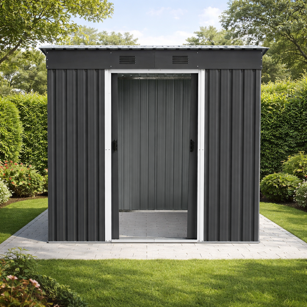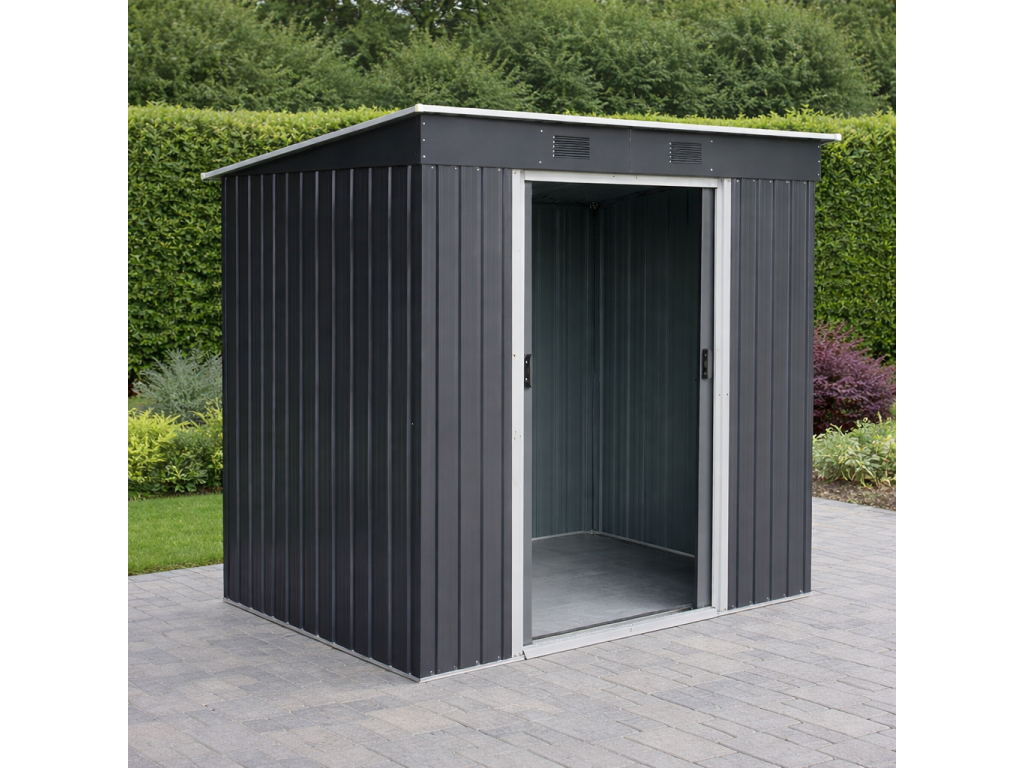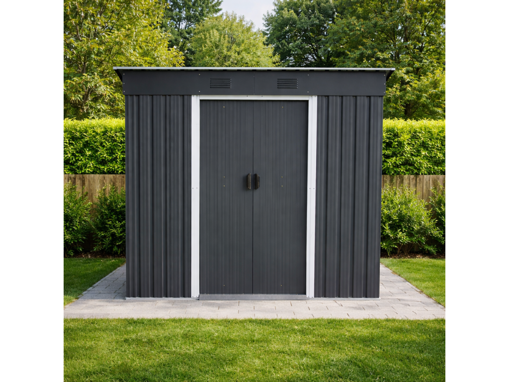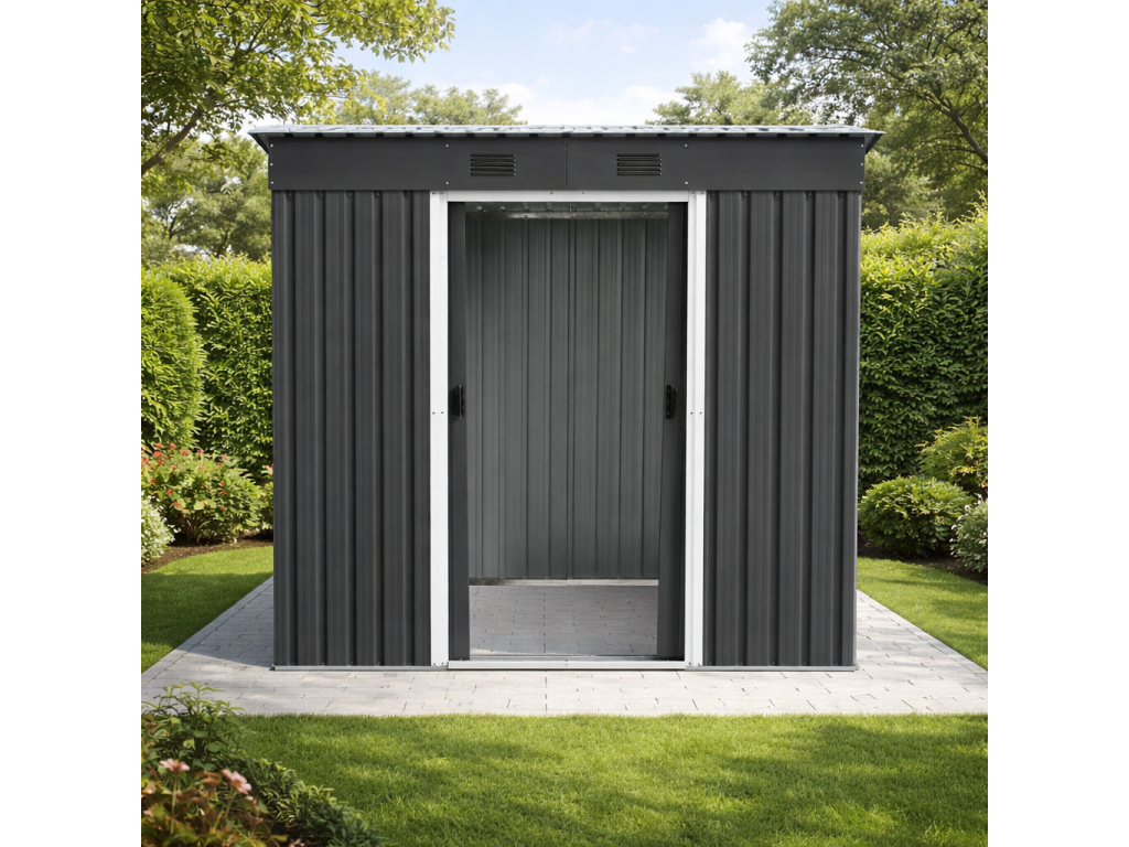 Zdravé prostředí a variabilní využitíModerní kovové provedení v antracitové a bílé barvě je doplněno větracími otvory, které podporují přirozenou cirkulaci vzduchu a pomáhají omezovat vznik vlhkosti uvnitř domku. Díky tomu zůstává uložené vybavení lépe chráněno před kondenzací a zatuchlým prostředím. Domek můžete využít jako: