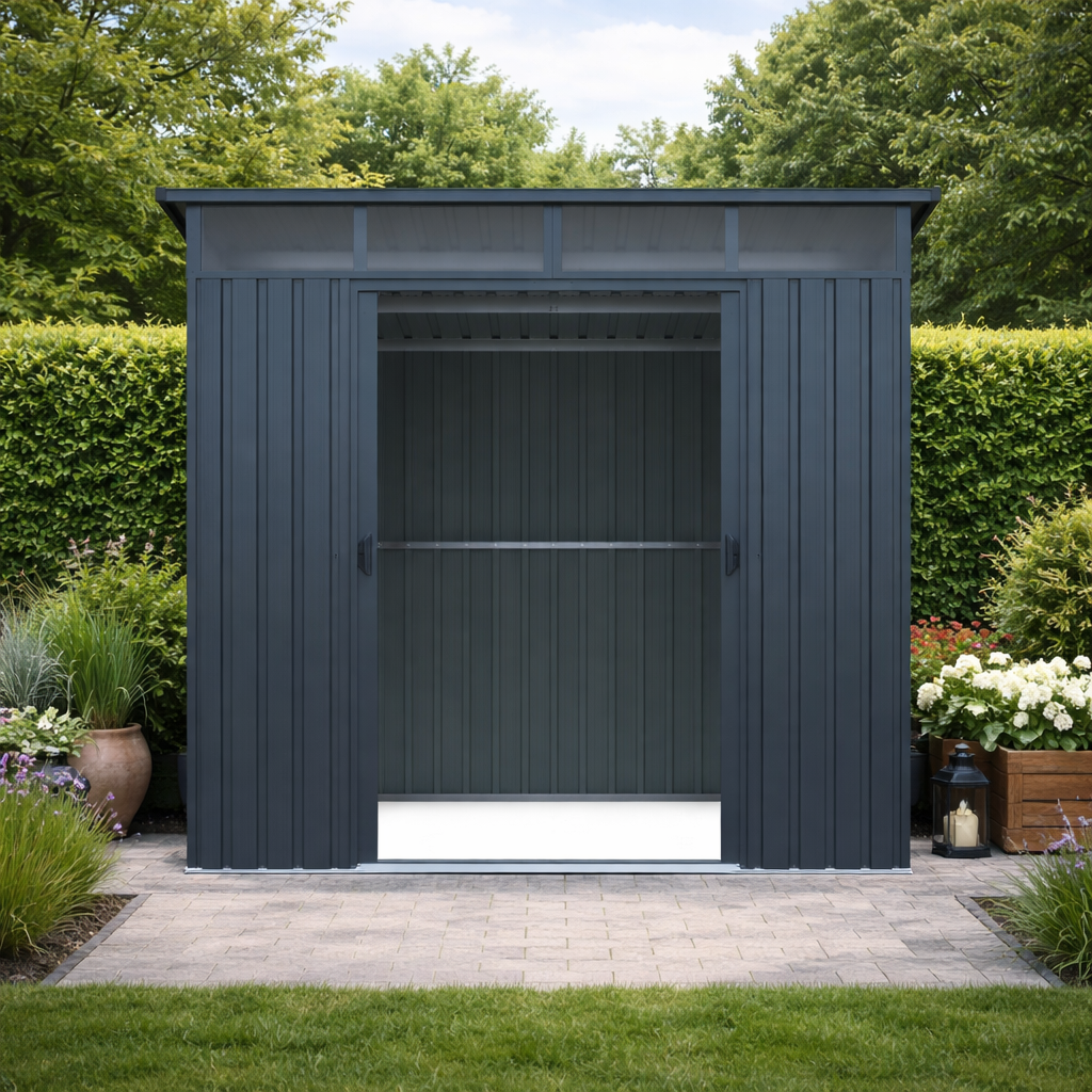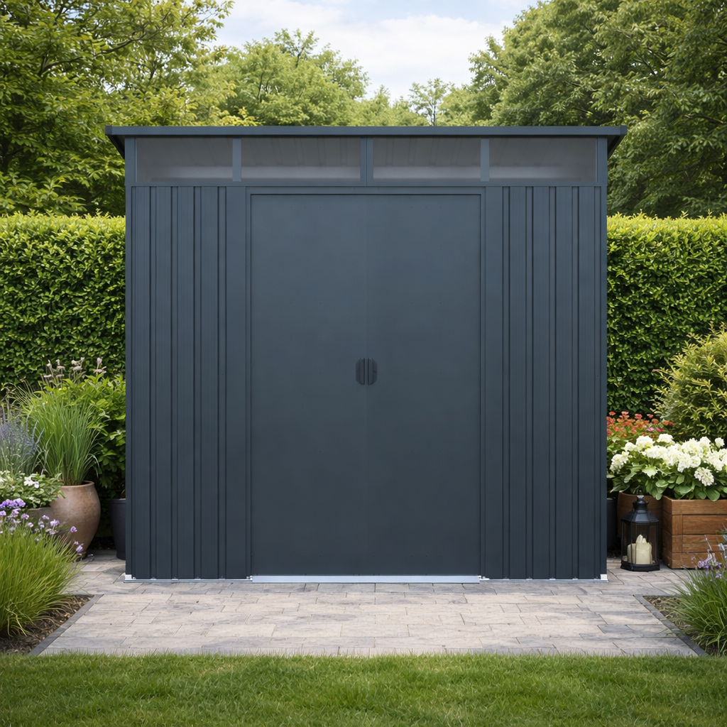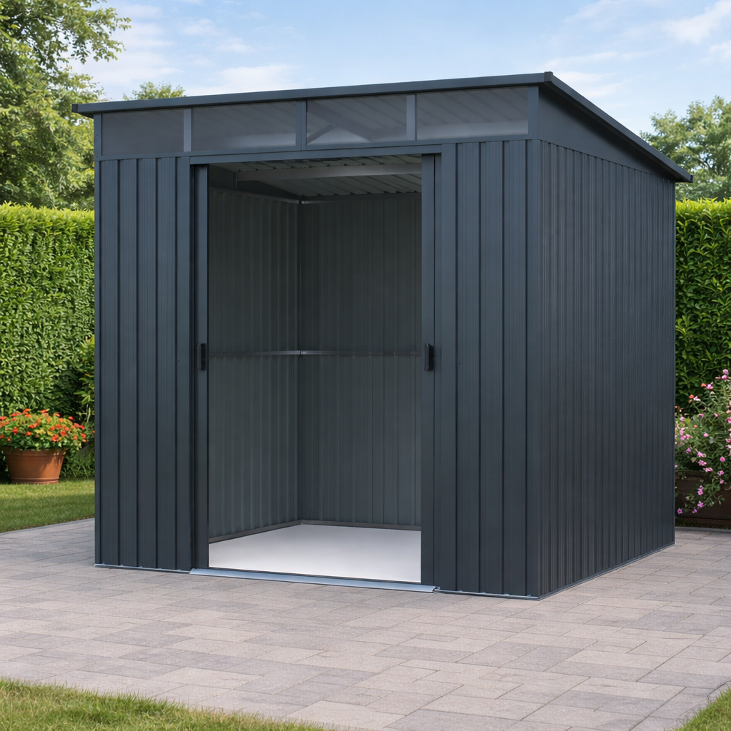 Moderní design s praktickým světlíkemKvalitní zahradní domek v elegantním antracitovém nebo bílém provedení skvěle zapadne do každé zahrady i dvora. Díky ploše 5,6 m² poskytuje dostatek prostoru pro uskladnění zahradní techniky i dalšího vybavení. Světlík z odolného polykarbonátu přivádí do interiéru přirozené světlo, takže se uvnitř pohodlně pohybujete i bez nutnosti umělého osvětlení. TIP: Pultová střecha nejen moderně vypadá, ale zároveň umožňuje efektivní odtok dešťové vody.