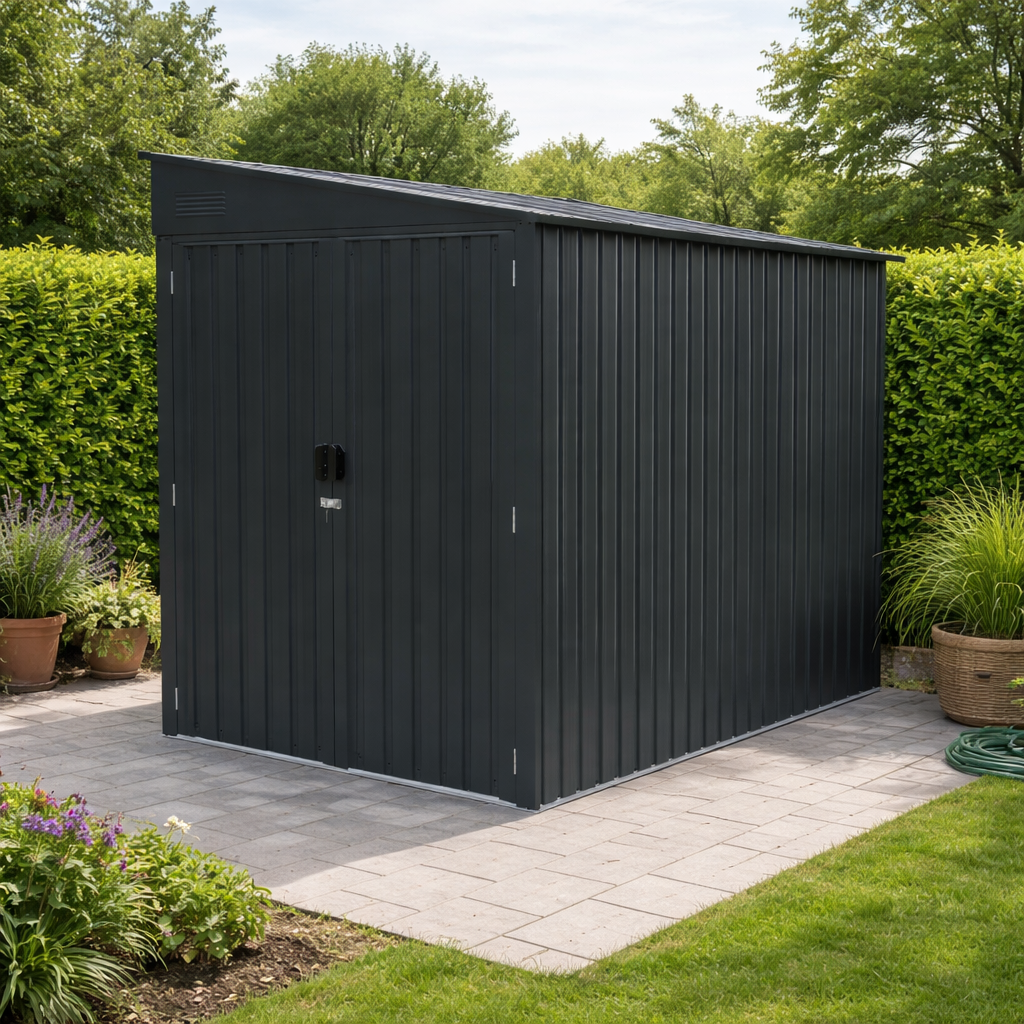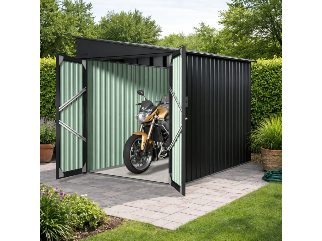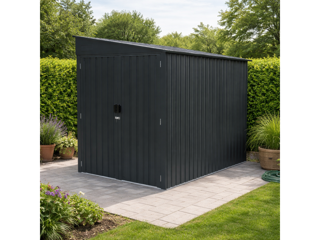 Zdravé prostředí a variabilní využitíModerní kovové provedení v antracitové barvě RAL 7016 nabízí odolné a stabilní řešení pro každou zahradu. Pro optimální ochranu uložených věcí doporučujeme zajistit vhodné umístění a pravidelnou kontrolu vlhkosti uvnitř domku. Domek můžete využít jako: