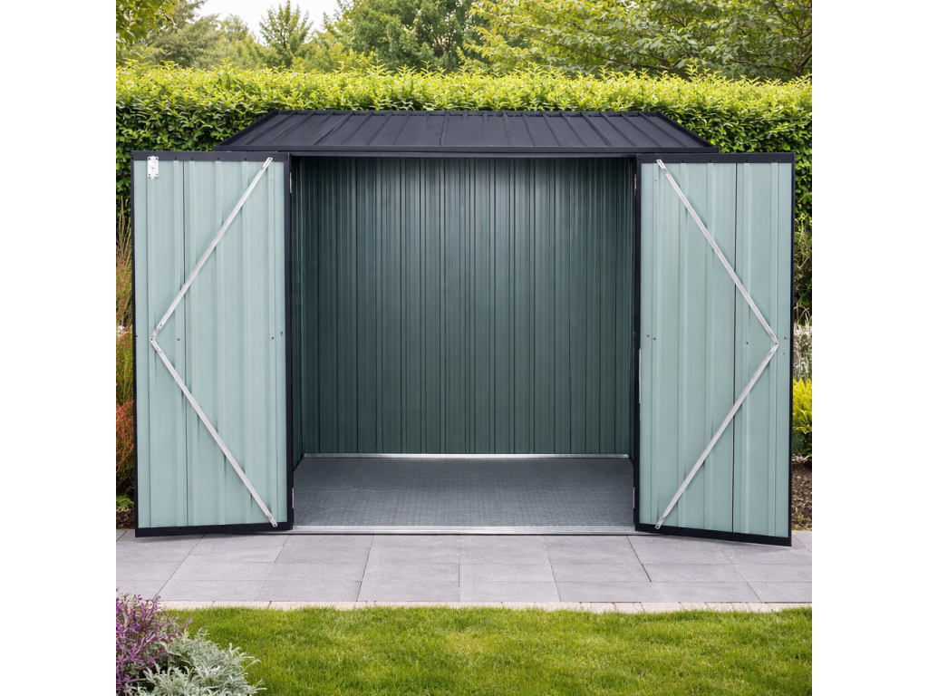 Ochrana proti povětrnostním vlivůmOcelové provedení poskytuje spolehlivou ochranu proti dešti, sněhu, větru i UV záření. Konstrukce je navržena tak, aby odolávala běžným klimatickým podmínkám během celého roku. Pevné stěny chrání uložené vybavení před vlhkostí a nečistotami. TIP: Pro maximální stabilitu doporučujeme domek instalovat na pevný a rovný podklad, například betonovou desku nebo dlažbu.