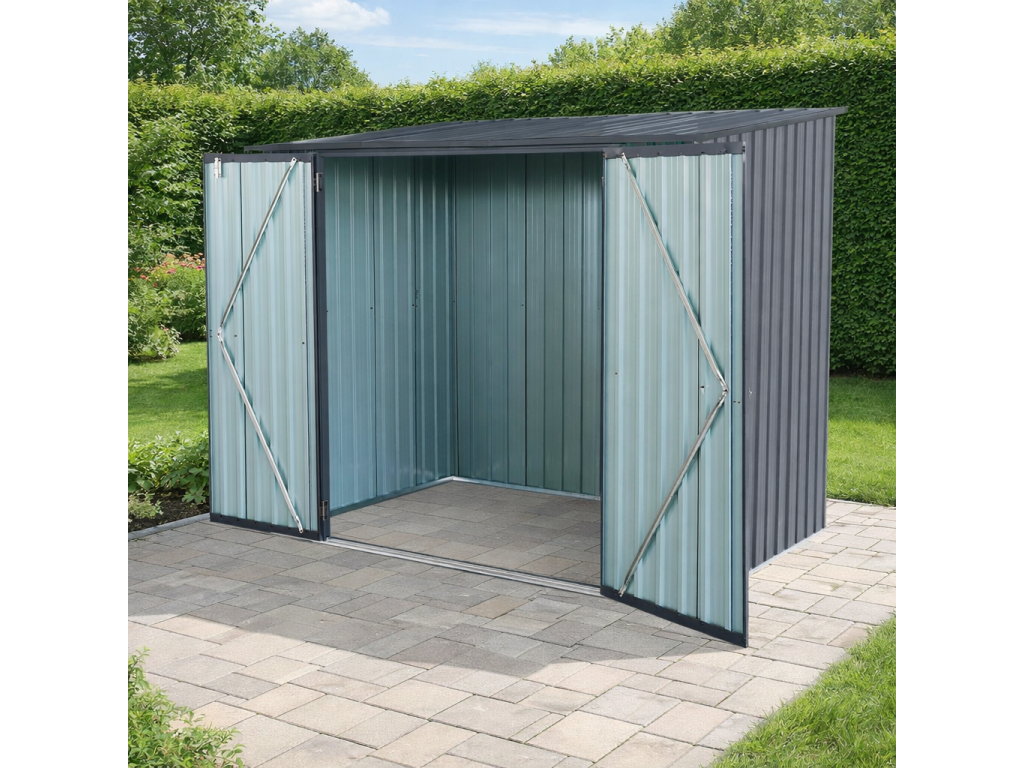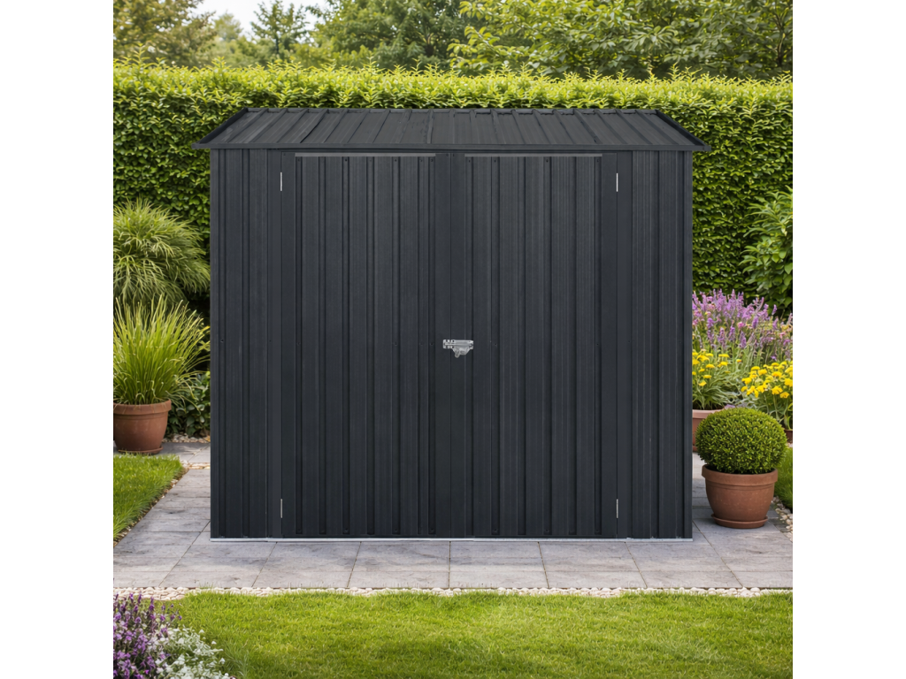 Moderní design s praktickým úložným prostoremKvalitní kovový zahradní domek v elegantní antracitové barvě skvěle zapadne do každé zahrady nebo dvora. S půdorysnou plochou 3,3 m² a rozměry 152 × 217 × 194 cm poskytuje dostatek prostoru pro zahradní náčiní, sekačku, regály i další vybavení. Moderní provedení působí čistě a nadčasově. TIP: Vnitřní prostor si můžete efektivně zorganizovat pomocí polic nebo závěsných držáků na nářadí.
