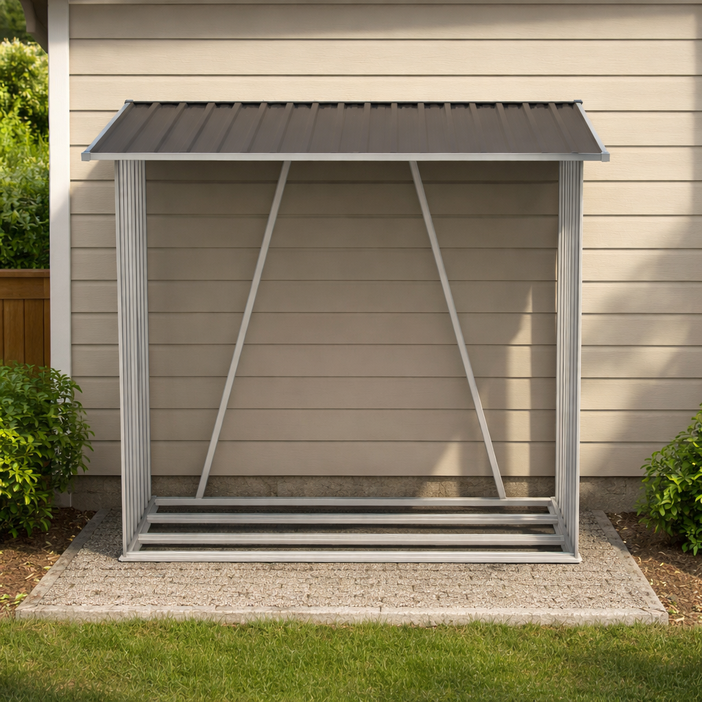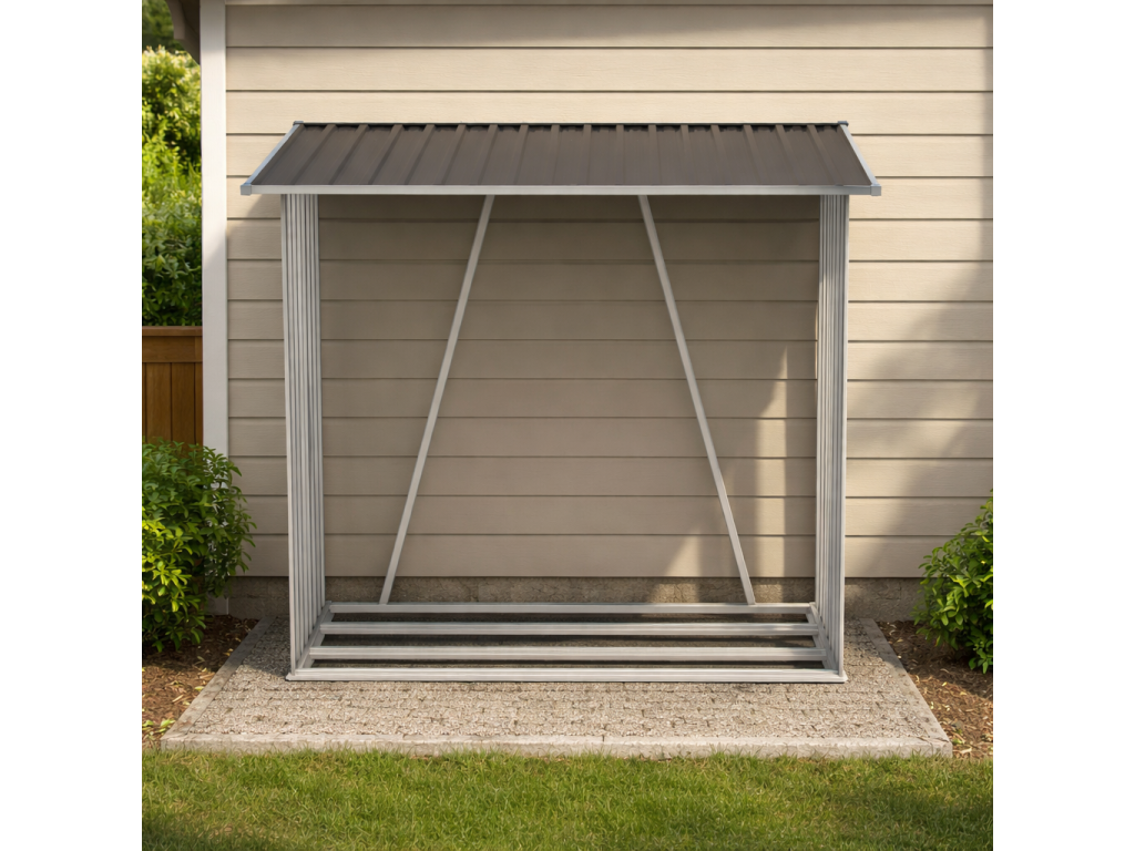Pevná ocelová konstrukceDřevník je vyroben z kvalitní galvanizované oceli, která je odolná vůči korozi i mechanickému poškození. Součástí balení jsou ocelové výztužné podpěry, které zvyšují stabilitu celé konstrukce. Pevné kovové provedení zajišťuje dlouhou životnost bez nutnosti náročné údržby. TIP: Pro maximální stabilitu doporučujeme instalaci na pevný a rovný podklad (beton, dlažba).