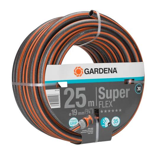 Zahradní hadice GARDENA SuperFLEX Premium s profilem Power Grip je ideálním společníkem pro každou zahradu. Díky inovativní technologii Power Grip se hadice spolehlivě a pevně spojí se spojkami, aniž by se uvolnila – prakticky funguje jako systém ozubených kol. Spirálová textilie s dvojitou spirálou udržuje tvar hadice, zabraňuje jejímu zamotávání a uzlům a zajišťuje zároveň vysokou pružnost pro snadnou manipulaci. Hadice je odolná vůči tlaku, UV záření i běžnému opotřebení a neobsahuje škodlivé látky jako ftaláty, kadmium, olovo či baryum. S délkou 25 m a průměrem 19 mm je perfektně vhodná pro zalévání, čištění či připojení zavlažovacích systémů. Díky kompatibilitě s GARDENA System můžete hadici snadno rozšířit či propojit s dalšími komponenty. Robustní, flexibilní a spolehlivá – to je hadice, která vám práci na zahradě značně usnadní.