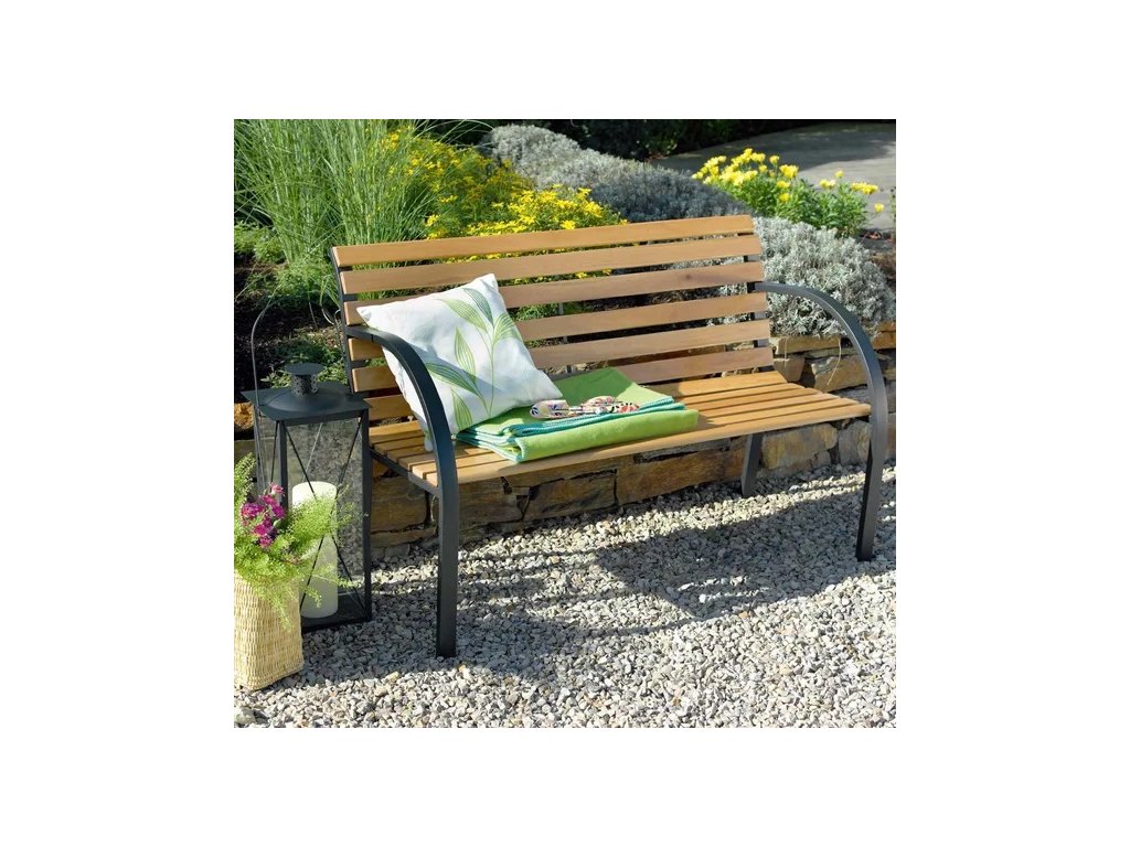 Zahradní lavice Sunfun Saale / 122 x 63 x 80 cm / ocel/dřevo / nosnost 150 kg / hnědá/černá