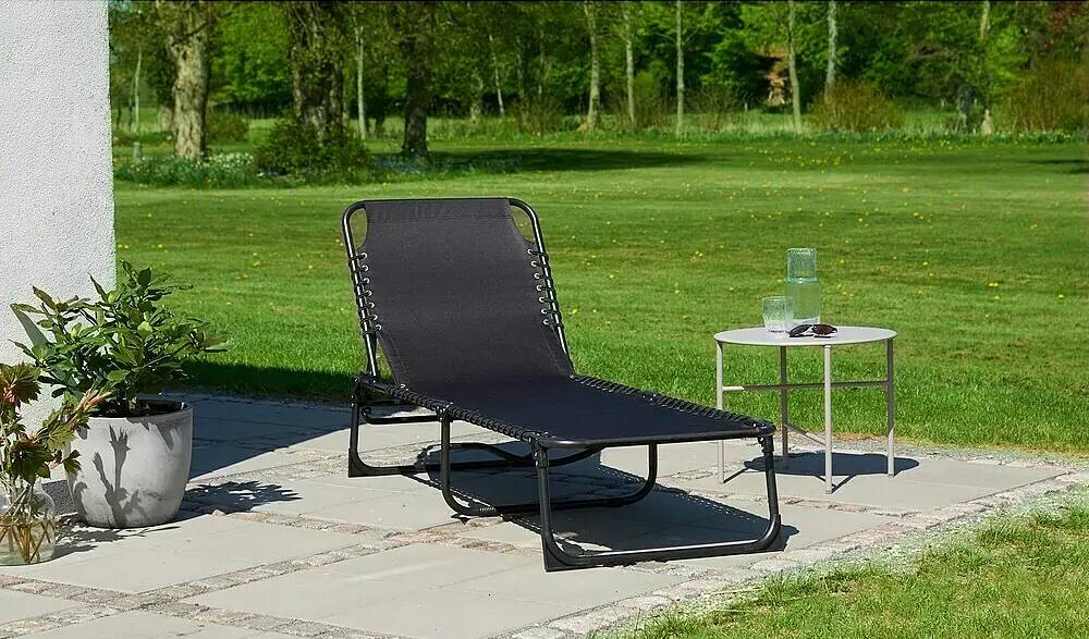 Zahradní lehátko nabízí komfortní místo k relaxaci a odpočinku na zahradě, terase nebo balkonu. Díky pevnému metallovému rámu a textilnímu sedáku z polyesterové tkaniny je lehátko odolné a zároveň pohodlné pro delší posezení i slunění. Textilní sedák je navržen tak, aby se snadno udržoval a rychle schnul po kontaktu s vlhkostí.