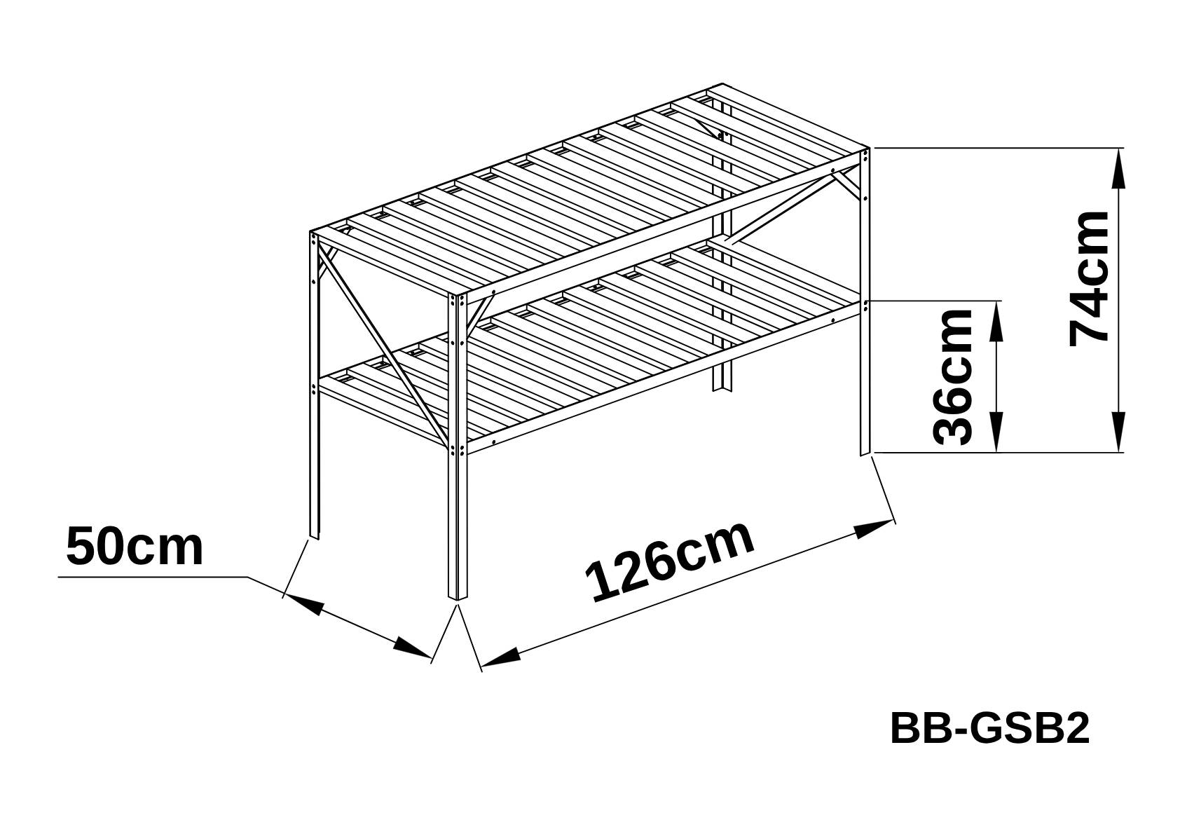 Zahradní regál do skleníku BestBerg BB-GSB2 / 2 police / 126 x 50 x 75 cm / stříbrná