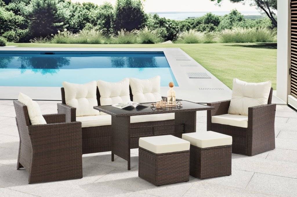 Představujeme vám luxusní ratanový zahradní set, který přináší eleganci a pohodlí do vašeho venkovního prostoru. Tento set se skládá ze sedačky, dvou křesel, dvou podnožek a prostorného zahradního stolu s tvrzeným sklem, a je navržen tak, aby splňoval všechny vaše potřeby pro relaxaci a zábavu pod širým nebem. Set je ideální pro zahrady, terasy nebo balkony a nabízí vám a vašim hostům maximální pohodlí a styl. Dopřejte si luxusní venkovní posezení s naším ratanovým zahradním setem a užívejte si krásné chvíle na čerstvém vzduchu.