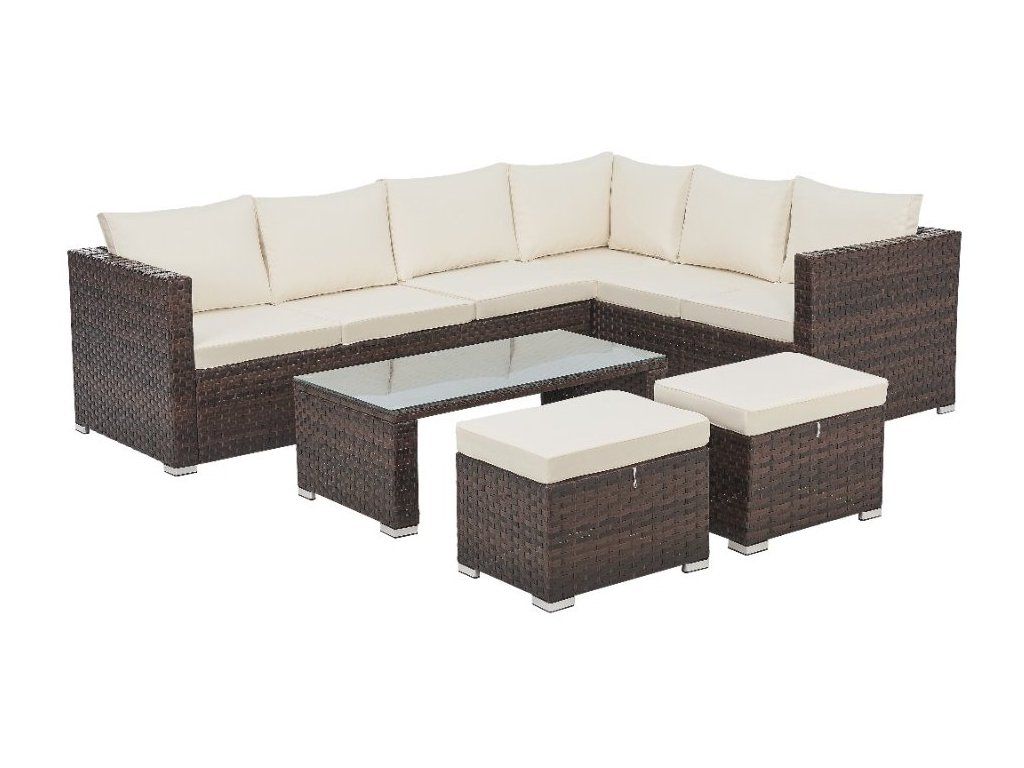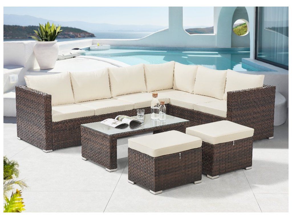 Zahradní set z ratanu BestBerg BBRF-1098BR / nosnost částí 120 kg / 180 g/m² / hnědá/krémová