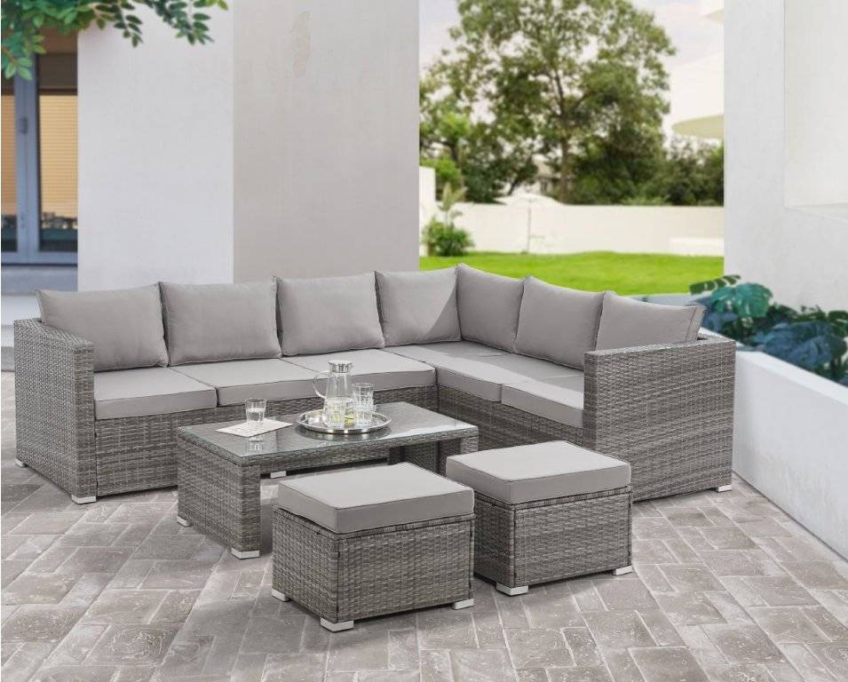 Představujeme vám luxusní ratanový zahradní set, který přináší eleganci a pohodlí do vašeho venkovního prostoru. Tento set se skládá z rohové sedačky, dvou podnožek a konferenčního stolu s tvrzeným sklem, a je navržen tak, aby splňoval všechny vaše potřeby pro relaxaci a zábavu pod širým nebem. Set je ideální pro zahrady, terasy nebo balkony a nabízí vám a vašim hostům maximální pohodlí a styl. Dopřejte si luxusní venkovní posezení s naším ratanovým zahradním setem a užívejte si krásné chvíle na čerstvém vzduchu.