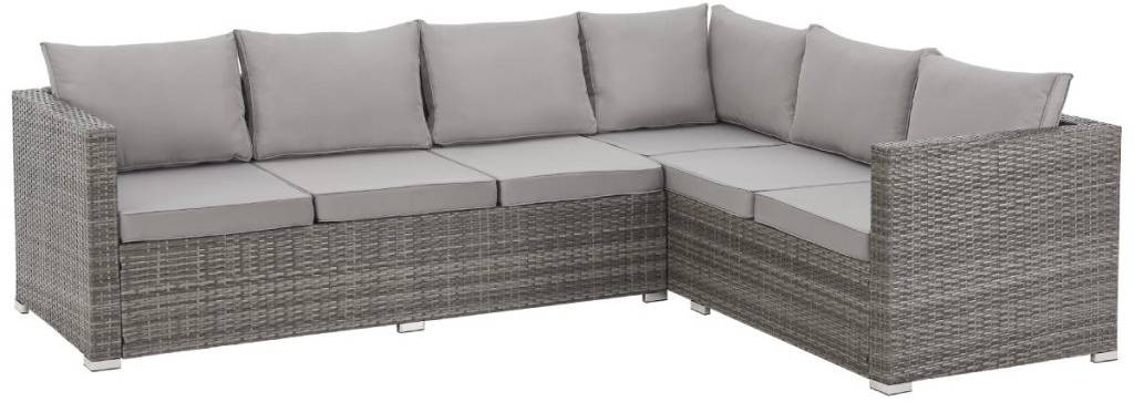 Rohová sedačka, složená ze dvou dílů, nabízí dostatek místa pro vás i vaše hosty. Sedací část je vybavena sedmi pohodlnými polštářky, které slouží jako opěra a poskytují maximální komfort při sezení. Polštářky jsou vyrobeny z kvalitního polyesteru s gramáží 180 g, což zaručuje jejich dlouhou životnost a odolnost vůči povětrnostním podmínkám. Kromě toho má sedačka područky na obou stranách, které přispívají k celkovému pohodlí a elegantnímu vzhledu.