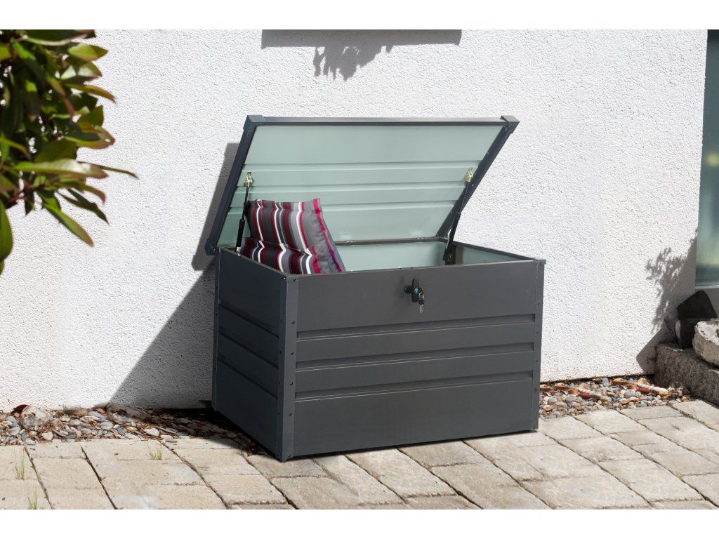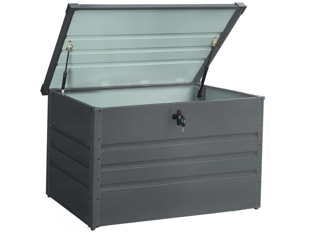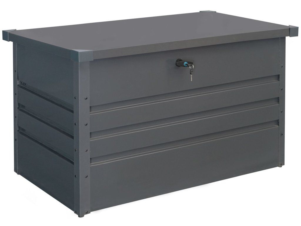 Zapomeňte na neustále přenášení venkovních textilovin domů a pak zase zpátky na zahradu. Do praktického plechového boxu pohodlně uložíte podsedáky, polštáře, deky i další textilní doplňky. Díky praktickému plechovému materiálu můžete box bez problému nechat venku a budete mít jistotu, že vše uvnitř zůstane v suchu i během bouřek a velkých dešťů. Bonusem je i praktický zámek s klíčem, který vám zajistí, že se do boxu nikdo jiný nedostane.