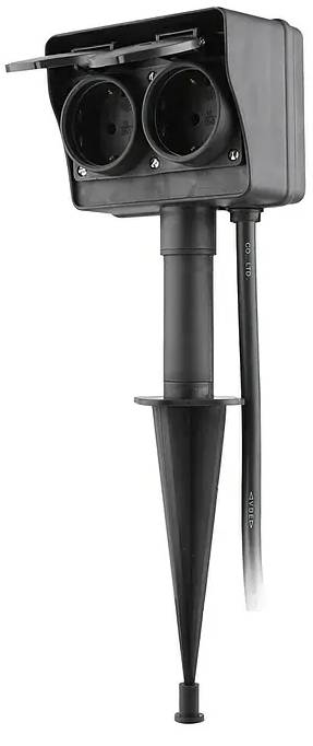 Zahradní zásuvka se zemním bodcem Voltomat / 2násobná / 5 m / černá