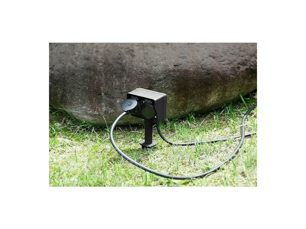 Díky integrovanému zemnímu trnu stačí zásuvku jednoduše zapíchnout do země. Přívodní kabel o délce 5 metrů poskytuje dostatečný dosah a flexibilitu při umístění zásuvky podle aktuálních potřeb.