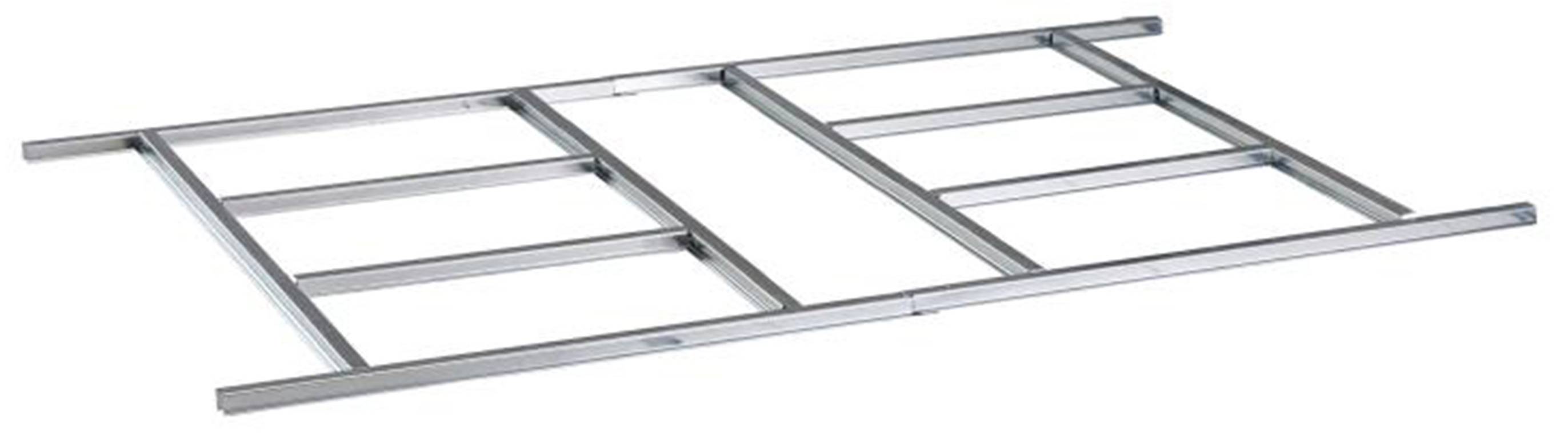 Pevná a stabilní konstrukceKvalitní kovová základna je navržena tak, aby poskytovala zahradnímu domku maximální oporu a stabilitu. Galvanizovaný ocelový rám o tloušťce 0,6 mm zajišťuje vysokou pevnost a odolnost vůči deformacím. Konstrukce pomáhá rovnoměrně rozložit hmotnost domku a přispívá k jeho dlouhodobé stabilitě. TIP: Pro ještě vyšší pevnost doporučujeme základnu doplnit o podlahu z OSB desek nebo dřevěných prken.
