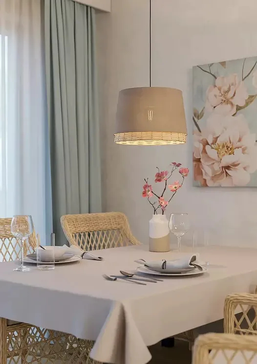 Závěsné svítidlo s lněným stínidlem vnese do vašeho interiéru lehkost, klid a hřejivou atmosféru. Přírodní béžová barva a jemná struktura textilu působí elegantně a nadčasově, díky čemuž se svítidlo snadno kombinuje s moderním i klasickým vybavením domácnosti.