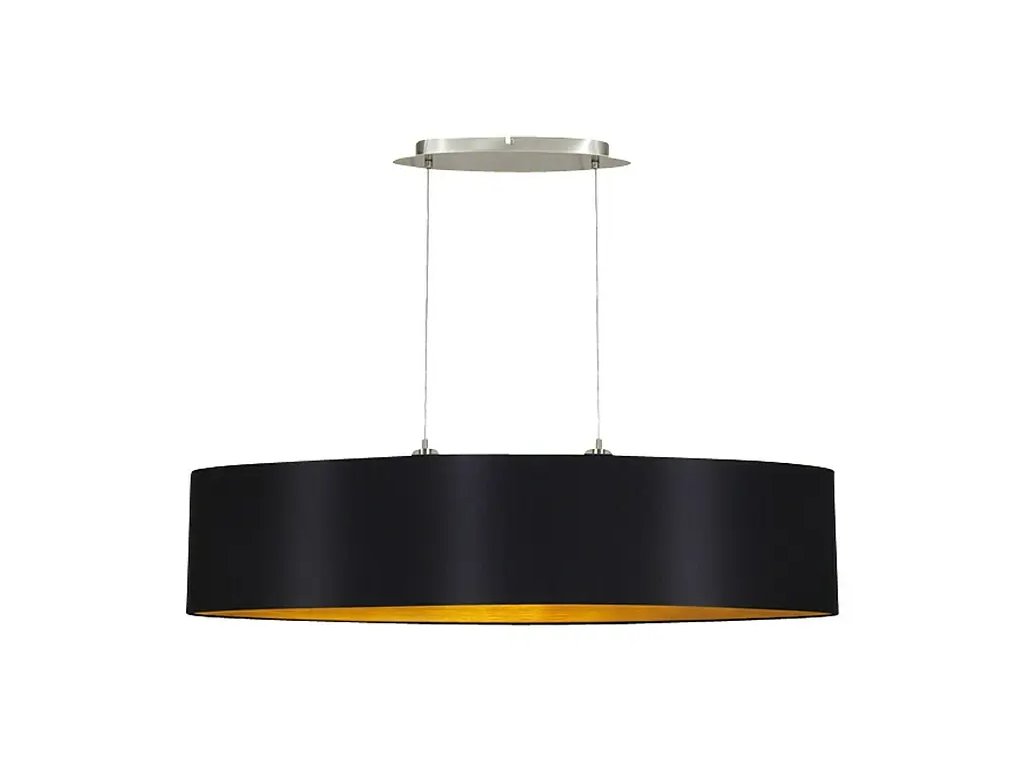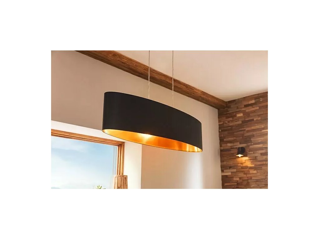 Závěsné svítidlo Eglo Maserlo v černém provedení je výrazným designovým prvkem, který okamžitě upoutá pozornost. Harmonická kombinace černého textilního stínidla a zlatého vnitřního povrchu vytváří luxusní vzhled a zároveň zajišťuje teplý, příjemný světelný efekt. Svítidlo se skvěle hodí do moderních i elegantních interiérů.