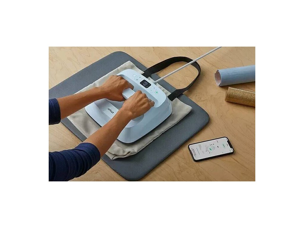 Cricut EasyPres 3 je nezbytný přístroj pro nažehlování potisků na textil. S keramickým povrchem lze teplotu přesně nastavit až do 205 °C. Doprovodná aplikace Cricut Heat je praktická, usnadňuje používání Easypressu s pokyny krok za krokem. EasyPress 3 kombinuje rychlost tepelného lisu s pohodlím žehličky a zajišťuje rychlé a bezpečné výsledky, které velmi dobře drží i po opakovaném praní. Mezi užitečné bezpečnostní funkce patří izolovaná odkládací přihrádka a funkce automatického vypnutí. Žehlička EasyPress je lehká, přenosná, prostorově nenáročná na skladování.