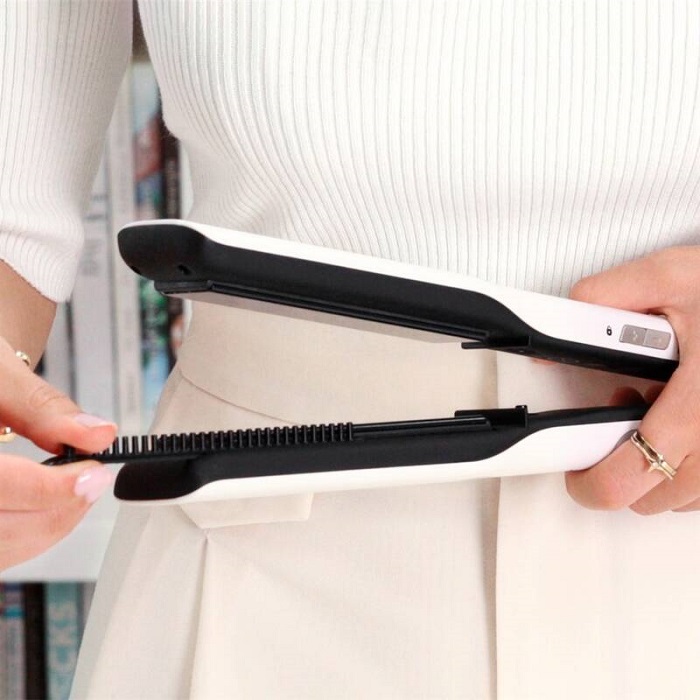Parní žehlička je opatřena nejen oscilačními pláty, které se dokonale přizpůsobí tvaru vašich vlasů, ale také integrovaným hřebenem. Tento hřeben efektivně rozčesává vlasy během žehlení a je možné ho kdykoliv od přístroje oddělat.