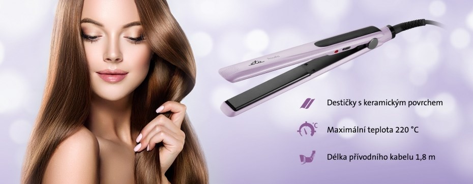 Skvěle rovné vlasy nebo šmrncovní účes se zatočenými konečky vytvoříte pomocí žehličky na vlasy ETA Rosalia 4337 90000 o příkonu 44 W. Elegantní provedení spotřebiče dokonale koresponduje s něžností, se kterou pečuje o vaše vlasy. Úprava vlasů je snadná a pohodlná. Napomáhá tomu zejména keramický povrch, kterým je žehlička ETA vybavena. Tento povrch umožňuje lehký skluz po vlasech. Destičky jsou navíc odpružené, aby perfektně přilnuly k vlasům a mohly je tak narovnat rychle a účinně.