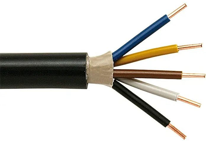 NYY-J 5x1,5 je vybaven pěti vodiči a průřezem 1,5 mm², což umožňuje jeho využití jak pro silové, tak ovládací zapojení. Materiálové složení zahrnuje měděné žíly a PVC kabát v černé barvě, který poskytuje vysokou mechanickou odolnost a ochranu proti vnějším vlivům.