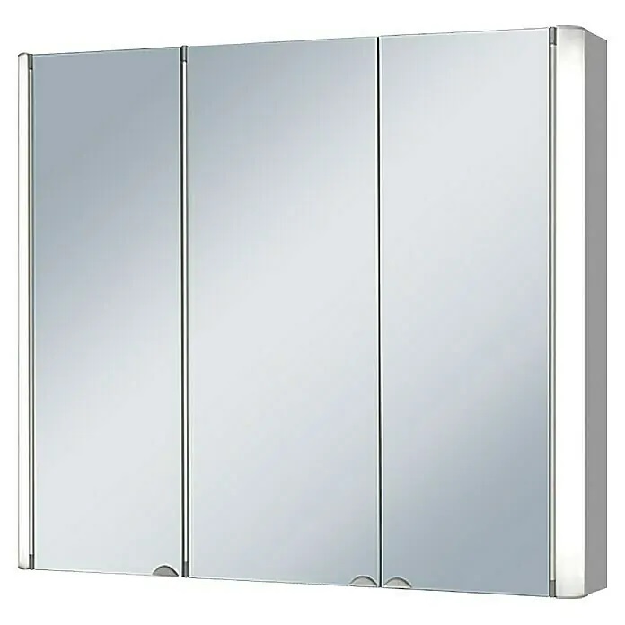Tato zrcadlová skříňka zapadne přímo do vaší koupelny. Kvalitní MDF zaručuje robustní provedení. Tři dvířka a v nich nastavitelné skleněné police nabízí veliký úložný prostor pro vaši kosmetiku a doplňky. Po stranách nabízí LED osvětlení, abyste se mohli upravit. Funkčnost je zaručena pomocí vypínače a zásuvky. Skříňka je již předmontovaná a snadno se umístí na stěnu.